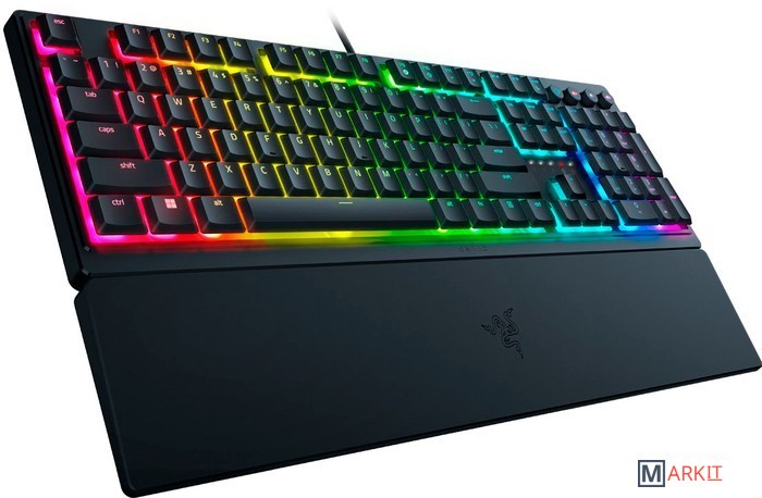 Сделайте первый шаг к производительности следующего уровня с Razer Ornata V3 X — низкопрофильной эргономичной игровой клавиатурой, разработанной для того, чтобы поднять вашу работу и игру на новый уровень. Благодаря новому ультратонкому форм-фактору, более прочным колпачкам клавиш и подсветке Razer Chroma RGB, эта клавиатура является идеальным представлением нашего несправедливого преимущества.Благодаря более тонким клавишным колпачкам и более коротким переключателям вы сможете пользоваться клавиатурой часами напролет без напряжения в суставах.Благодаря щелкающим механическим переключателям и привычным тактильным свойствам, характерным для традиционной клавиатуры, каждое нажатие клавиши будет и приятным, и точным.Клавишные колпачки этой клавиатуры долговечнее обычных, UV-покрытие обеспечивает устойчивость надписей к истиранию и защищает клавиши от износа при частом использовании.Настройте их на паузу, воспроизведение, пропуск и изменение любого параметра — от яркости до громкости. Эта клавиатура создана для удобства и полного наслаждения любимыми развлечениями.Подставка под запястья легко примагничивается к клавиатуре, а ее покрытие «софт-тач» обеспечивает достаточный комфорт и хорошо поддерживает ваши запястья, что особенно важно при продолжительном использовании.Благодаря 16,8 млн цветовых оттенков и целому набору эффектов вы можете настроить клавиатуру в соответствии со своими предпочтениями и получить доступ к динамическим эффектам подсветки для сотен игр с поддержкой Chroma.