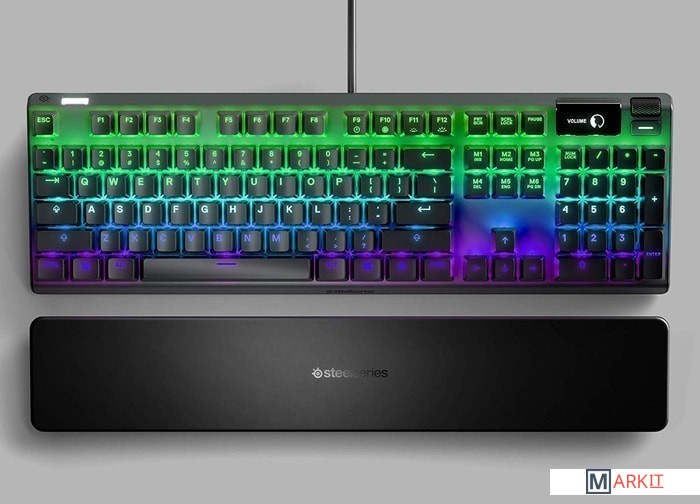 Данная игровая клавиатура снабжена дисплеем OLED Smart, благодаря которому можно управлять настройками клавиатуры без необходимости переключаться между окнами на компьютере. Также присутствует функция оповещений Discord, Tidal и Spotify в режиме реального времени и возможность сохранения до 5 настраиваемых макросов.