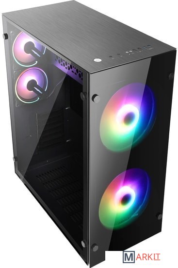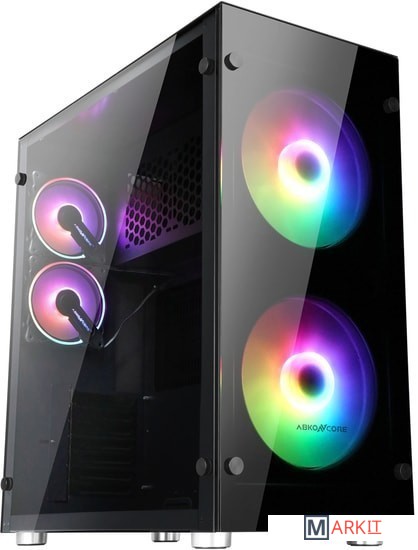 Компьютерный корпус формата Full-Tower Ramsses 850 SYNC с синхронизируемой подсветкой (5V), двумя предустановленными 200 мм вентиляторами SPECTRUM спереди и двумя HR120 сзади, боковой и передней панелью из закаленного стекла.
