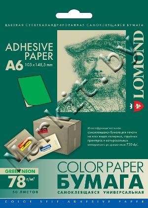 Самоклеящаяся бумага LOMOND (2023005) A6, 1 дел (100x150мм), зеленая, 50 листов Код: 3546