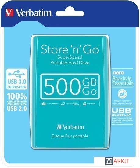 Markit » Внешние накопители (HDD и SSD) » Внешний накопитель Verbatim Store 'n' Go с USB 3.0 500GB (бирюзовый) [53171]
